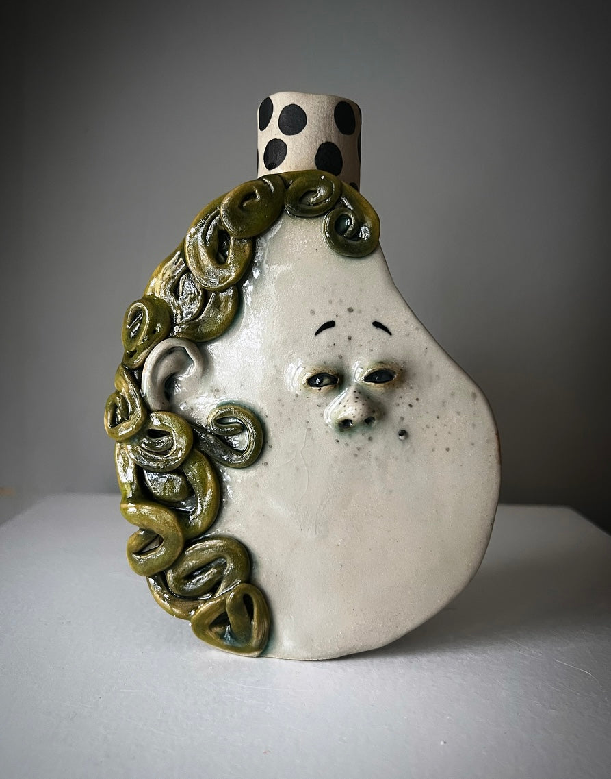 Skulpterat ansikte, handmålade dekorer. Alla olika.