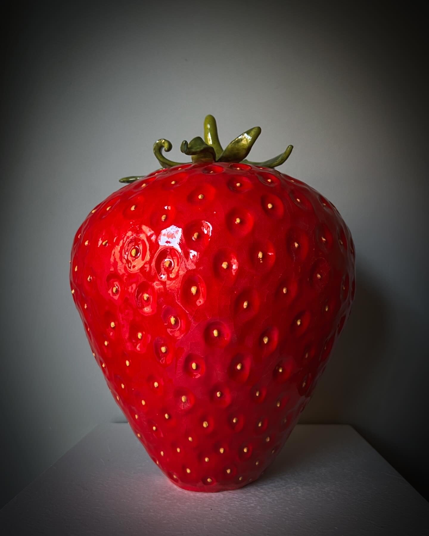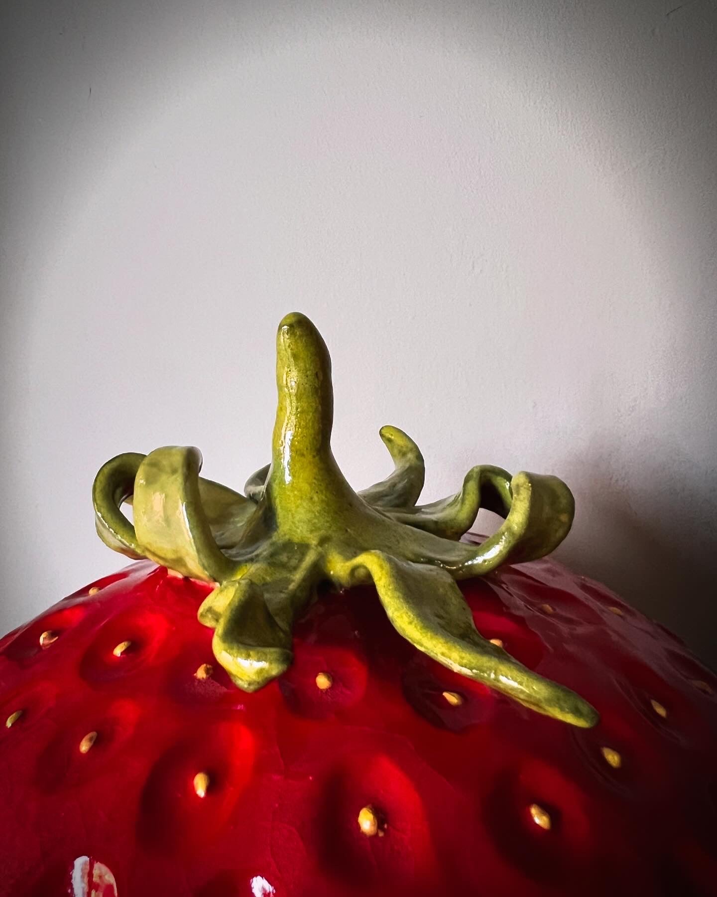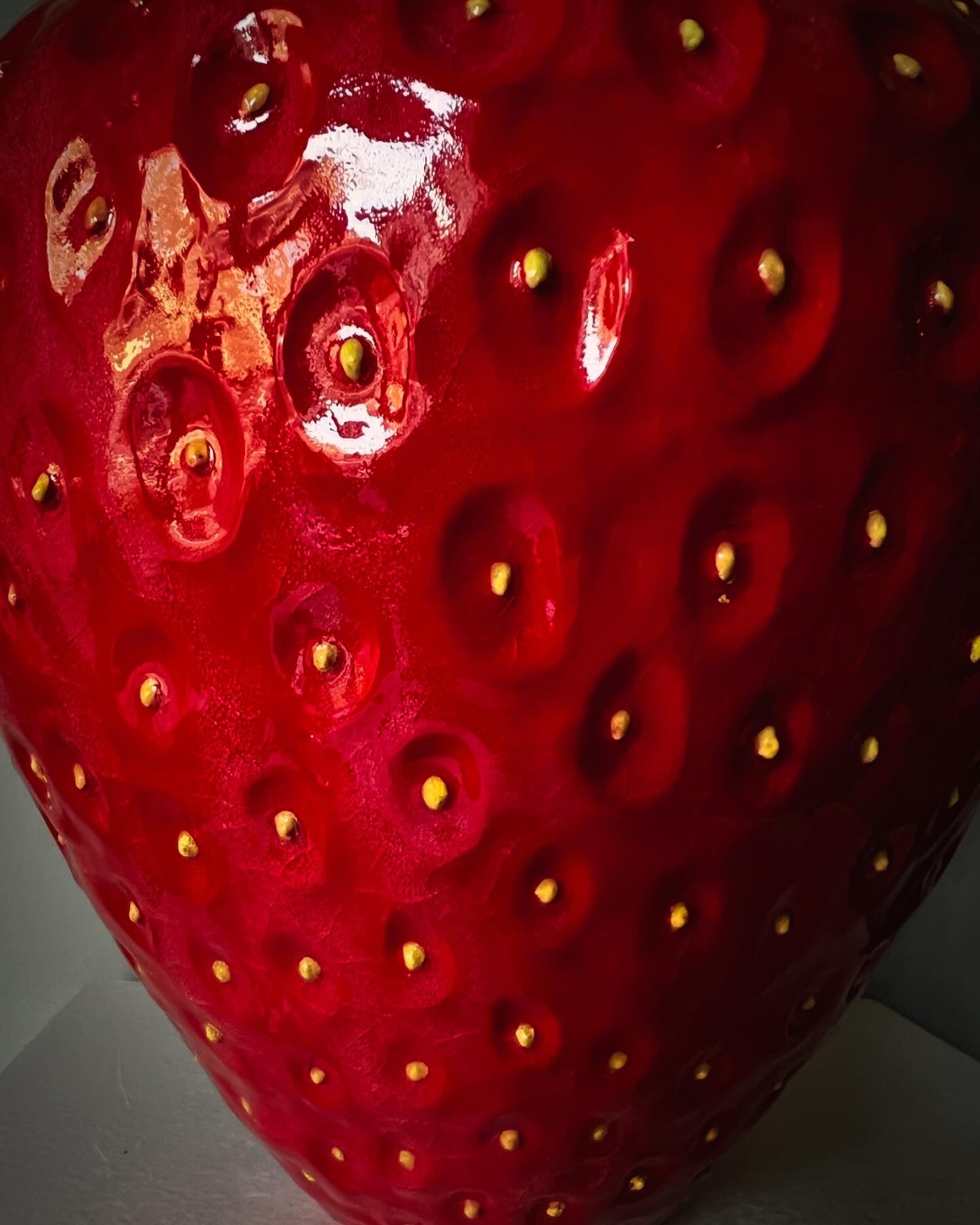 Stor klarröd jordgubbe i stengods! En skulptur som inte går att missa!