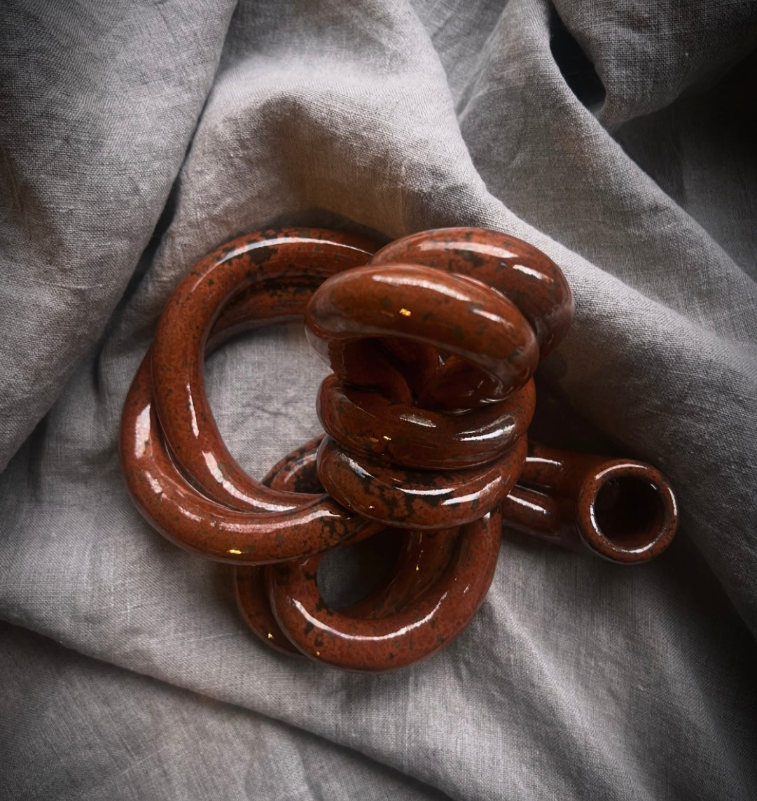 Knut i en ljus stengodslera med högblank intensiv roströd