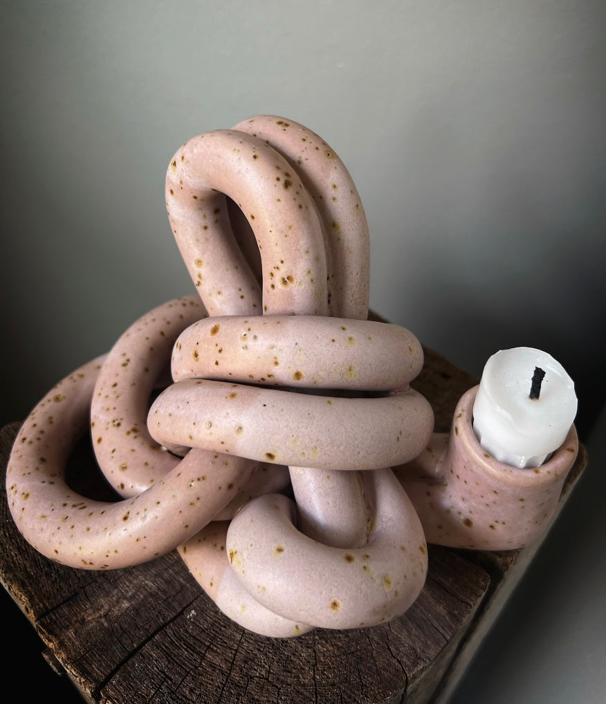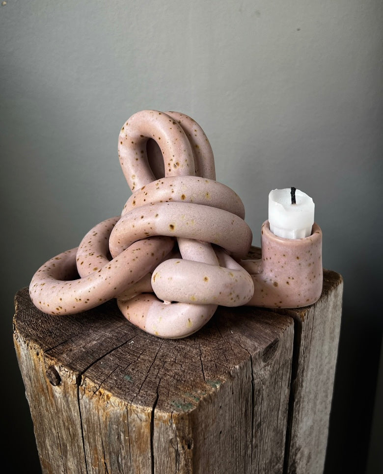 Knut i en ljus stengodslera med en matt ljusrosa glasyr.