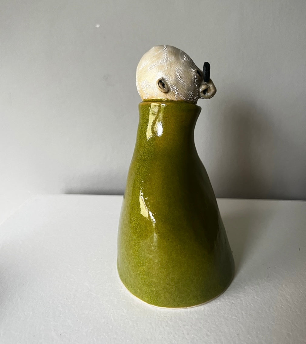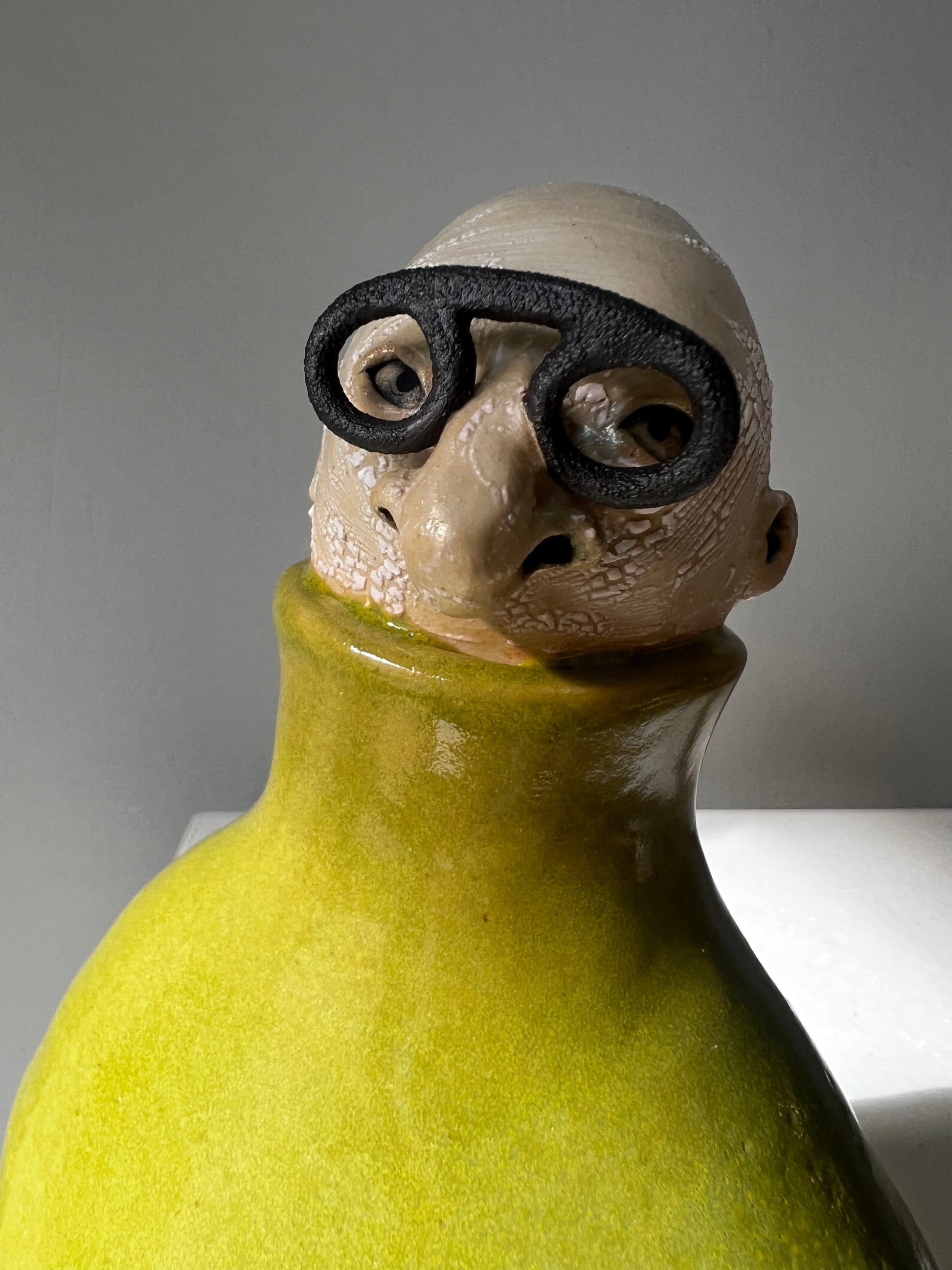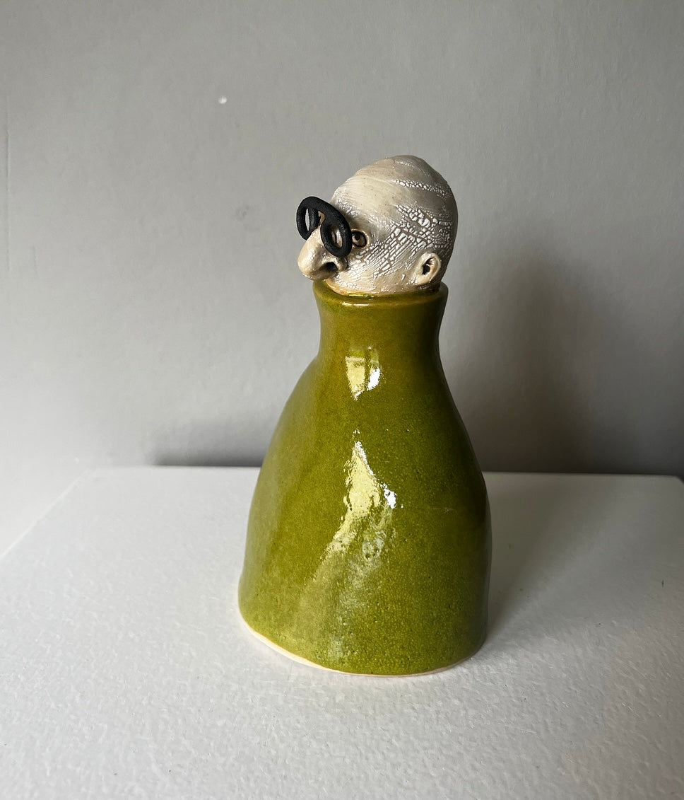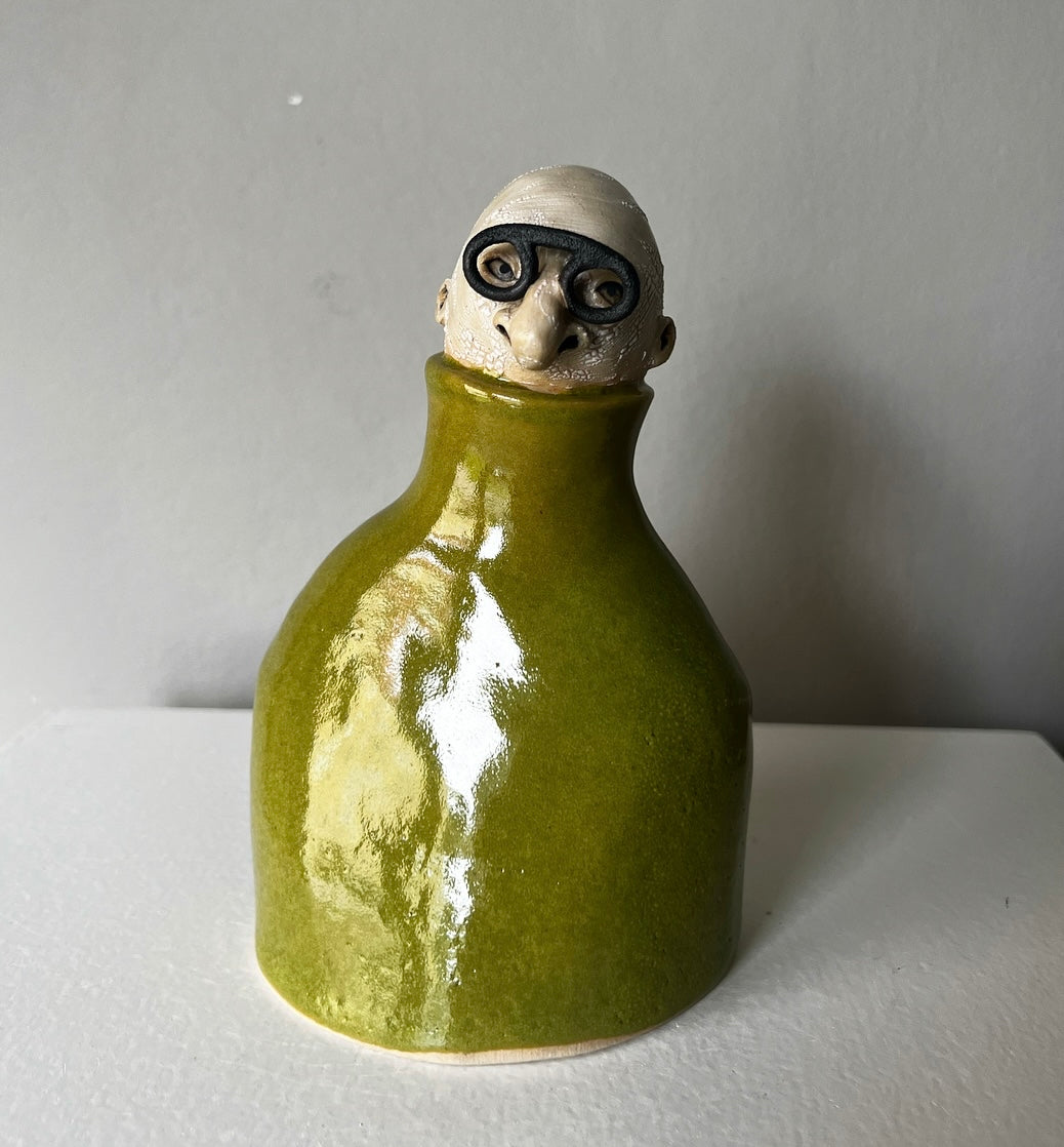 Reza har svarta matta pilotbågar & en högblanka olivgrön polotröja.