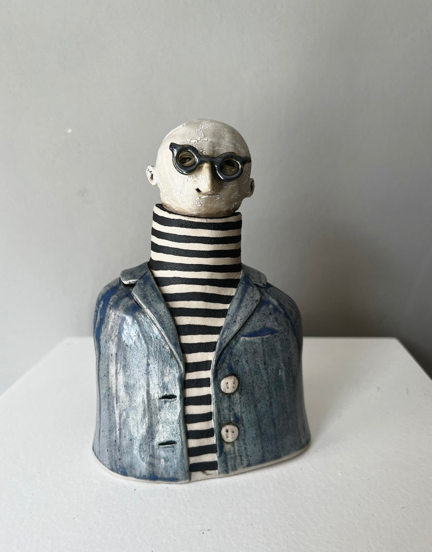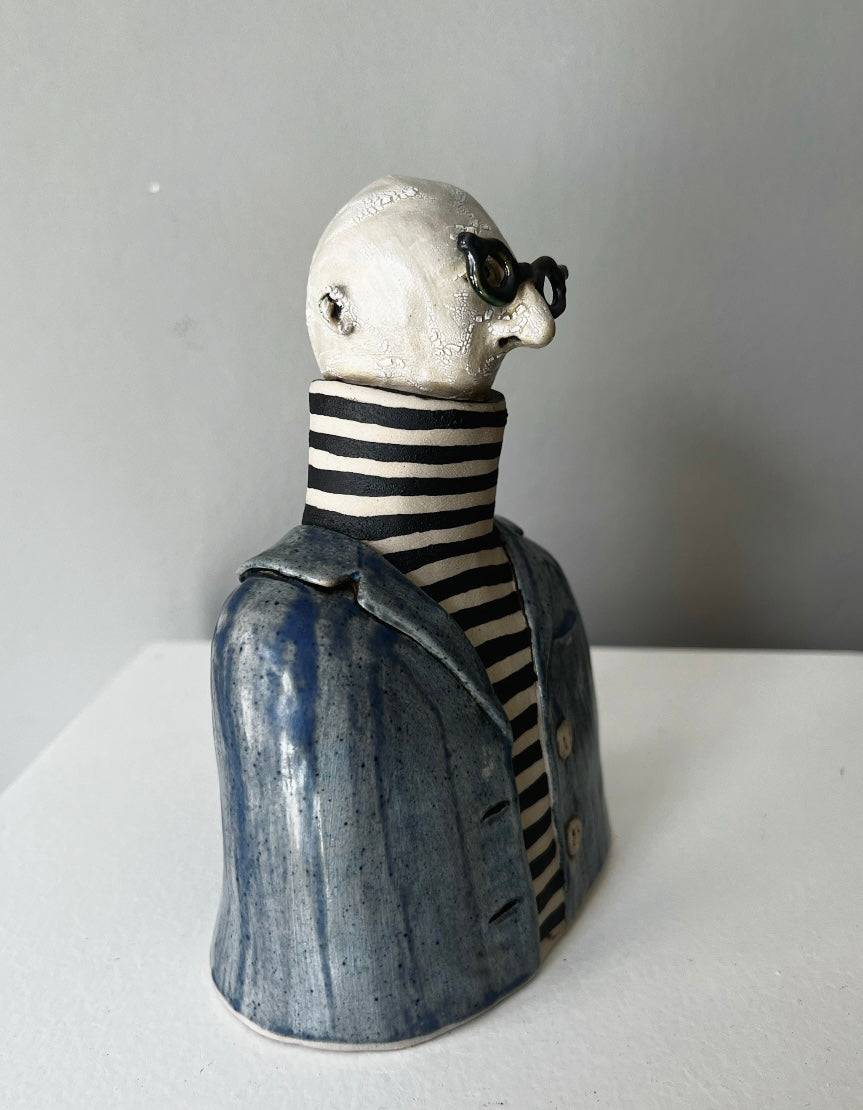 Dag har klassiska runda glasögon i grön-metallic, jeansjacka & randig polo.