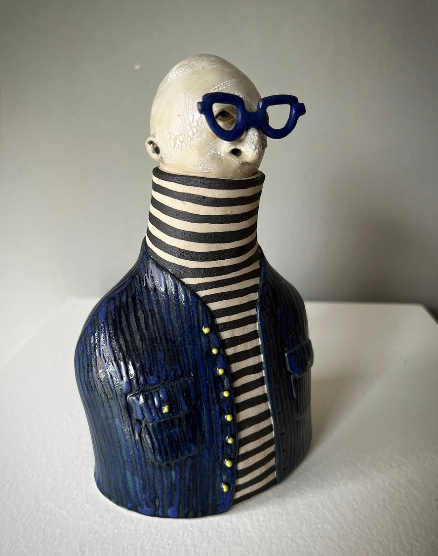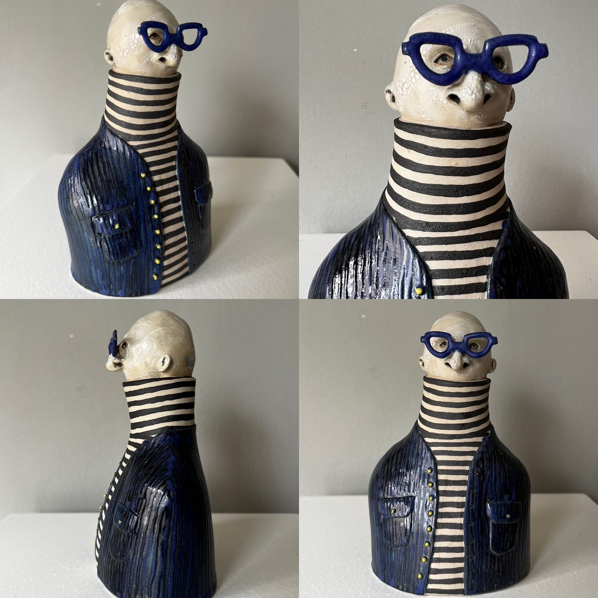 Ingmar har mörkblå overshirt i manchester över en klassiskt randig polo! Glasögonen är kungsblå.