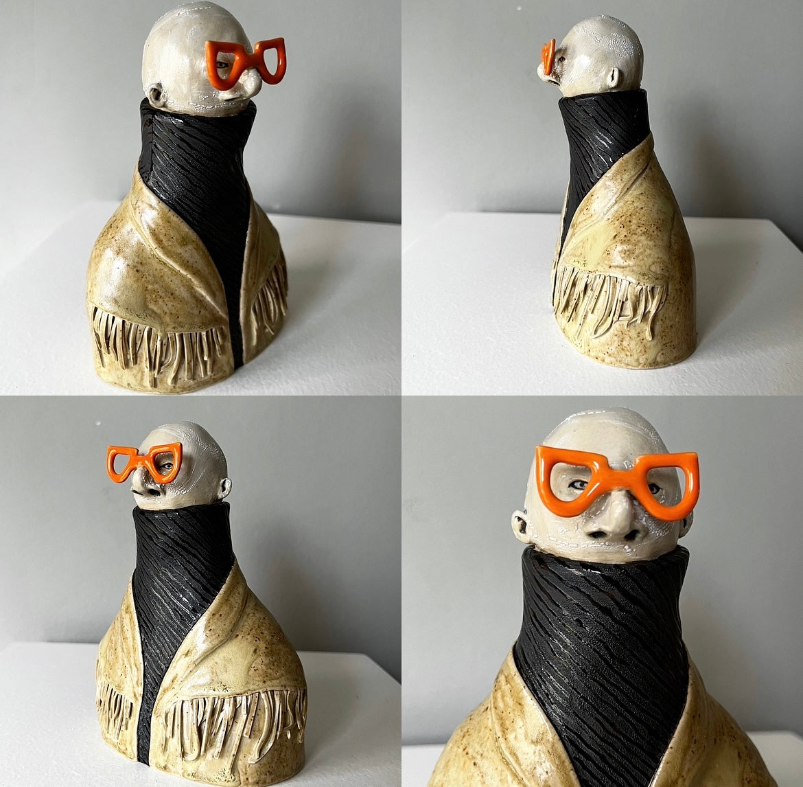 Frode har fransjacka & svart polo med blanka diagonala streck, pilotbågarna är skinande, knallorange!