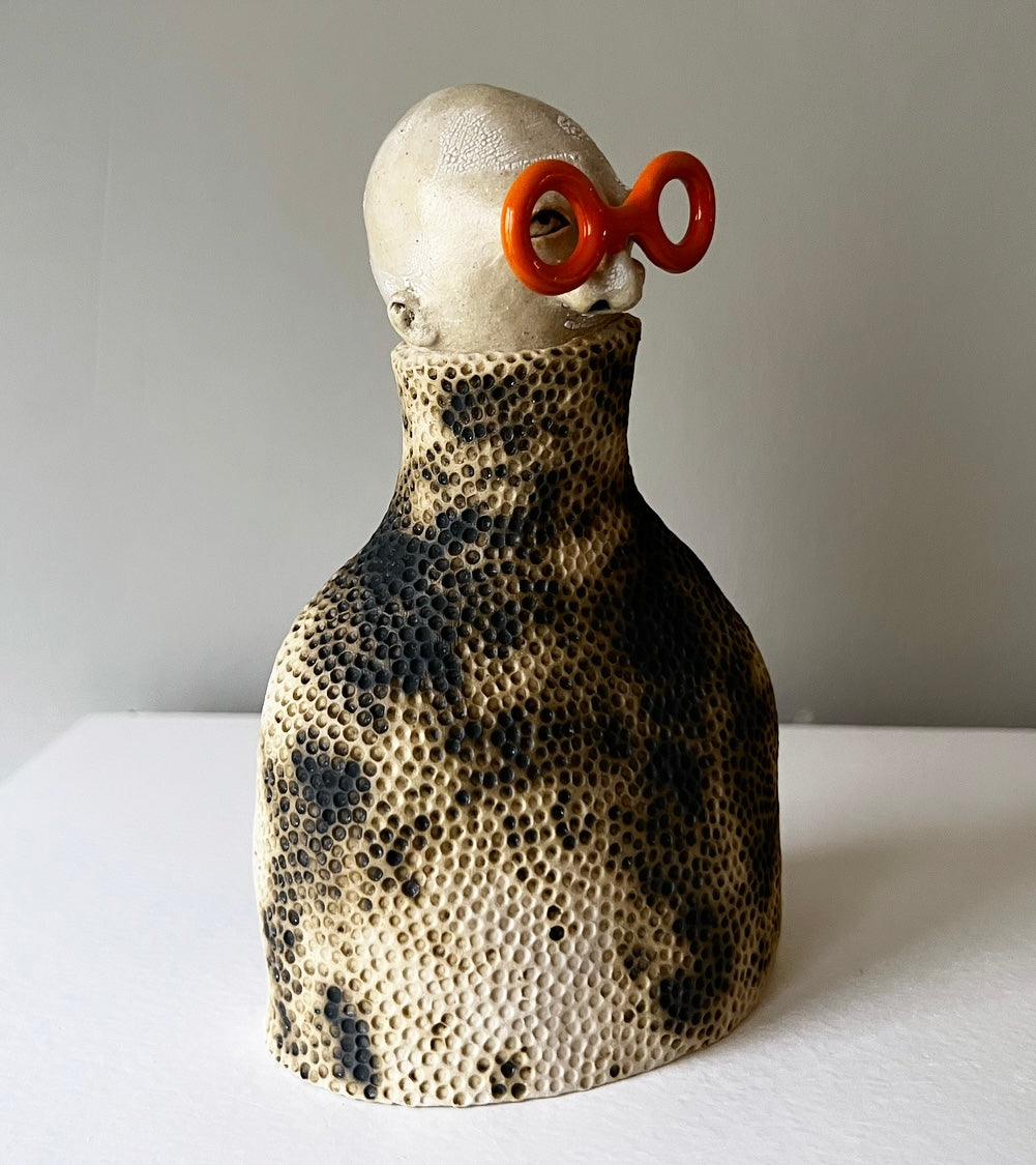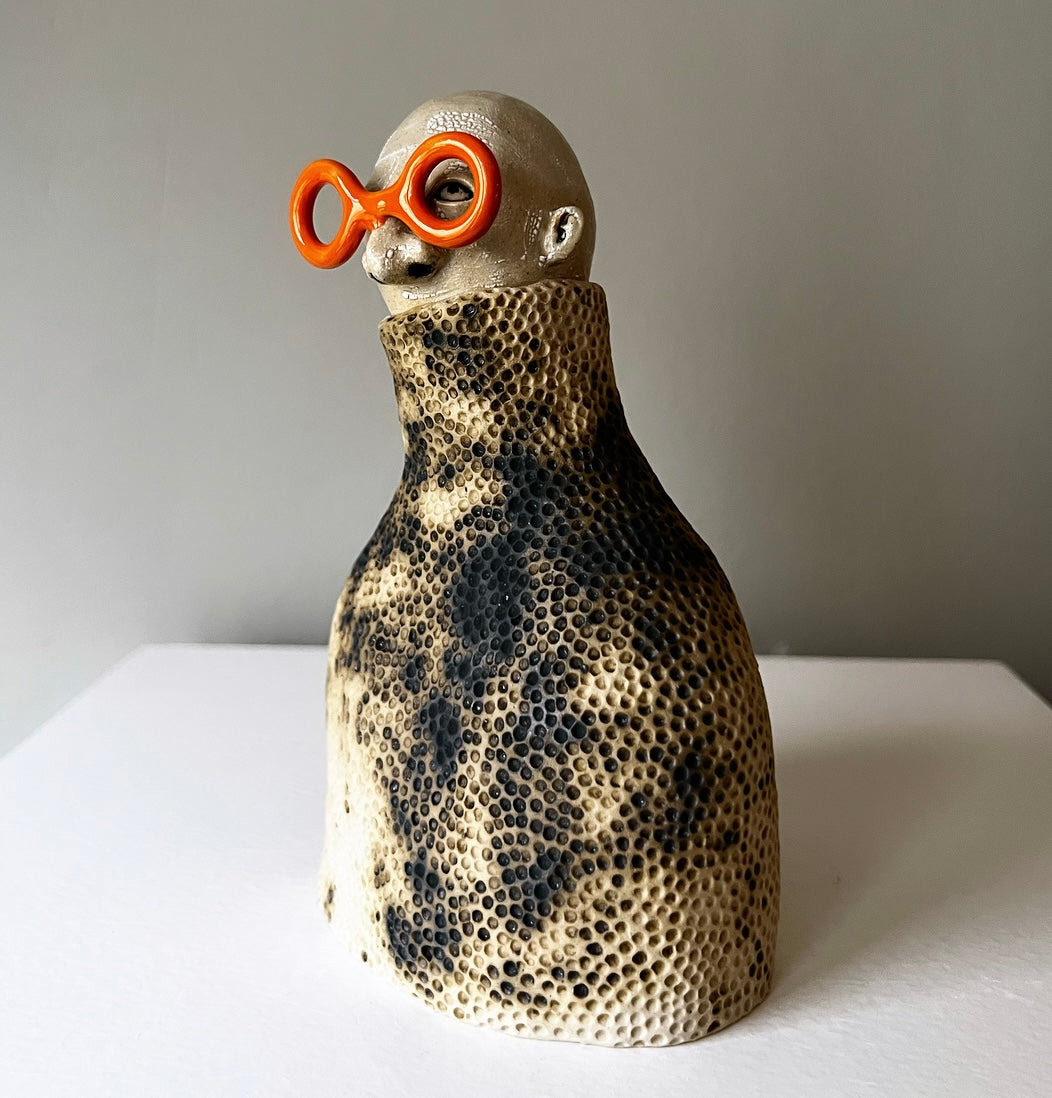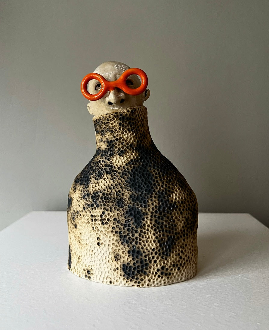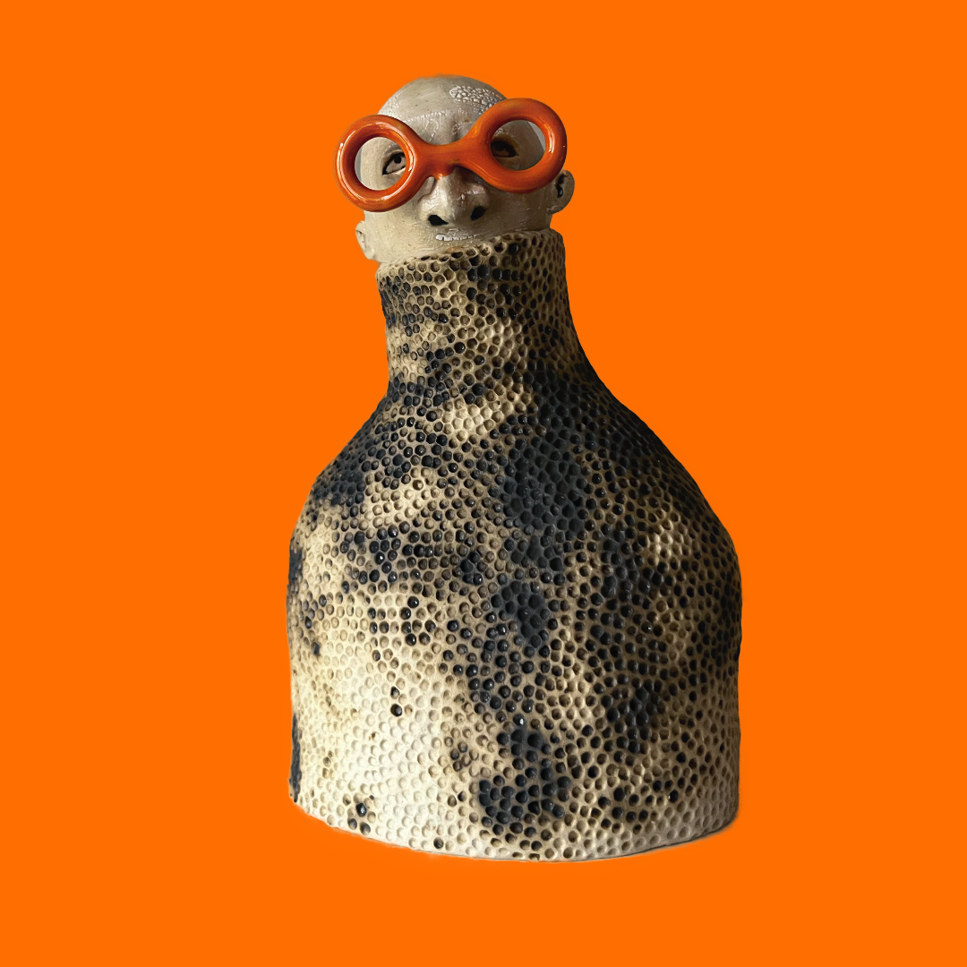 Leo har en polo med struktur, flammig av kopparoxid, glasögonen är högblanka i skarp orange!