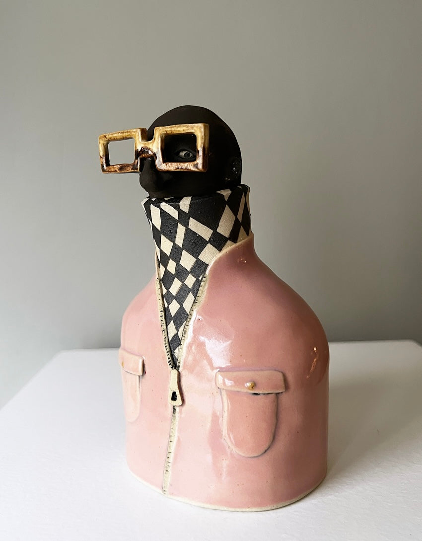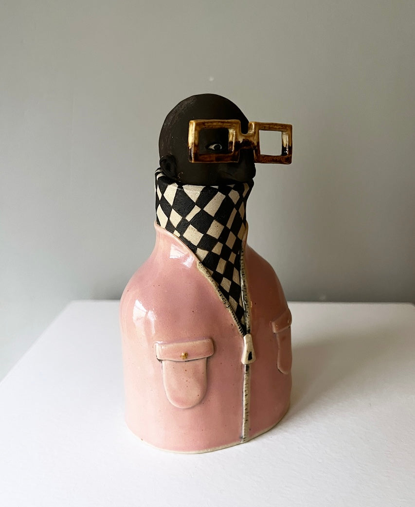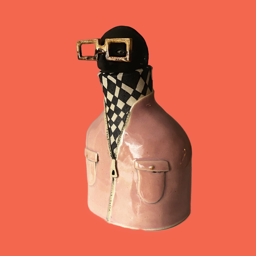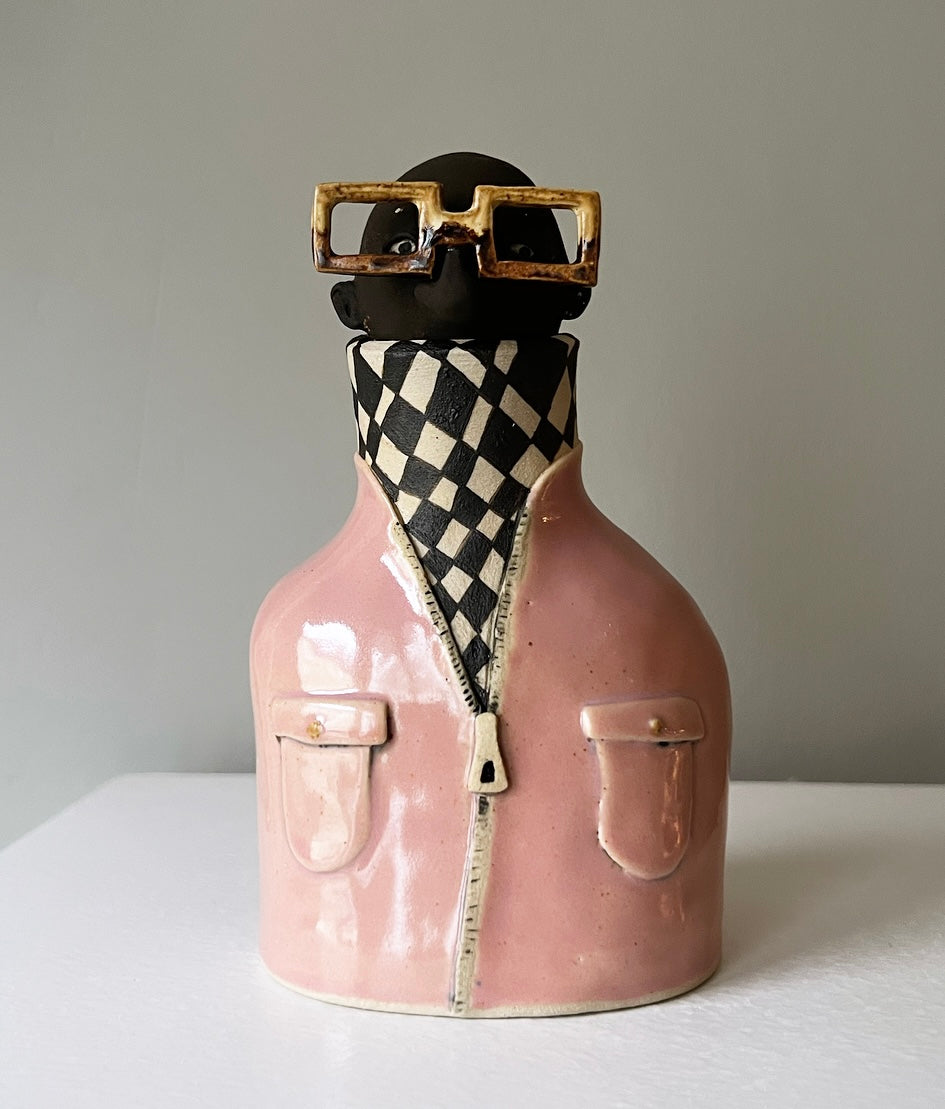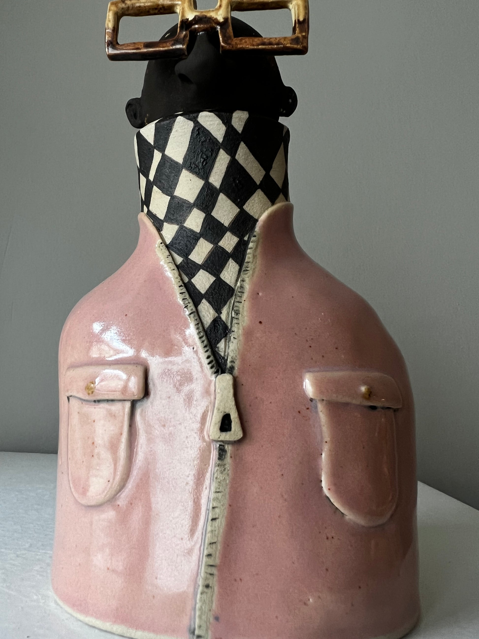 Den rutiga polon är också lite vågad liksom den blanka rosa jackan med dragkedja.