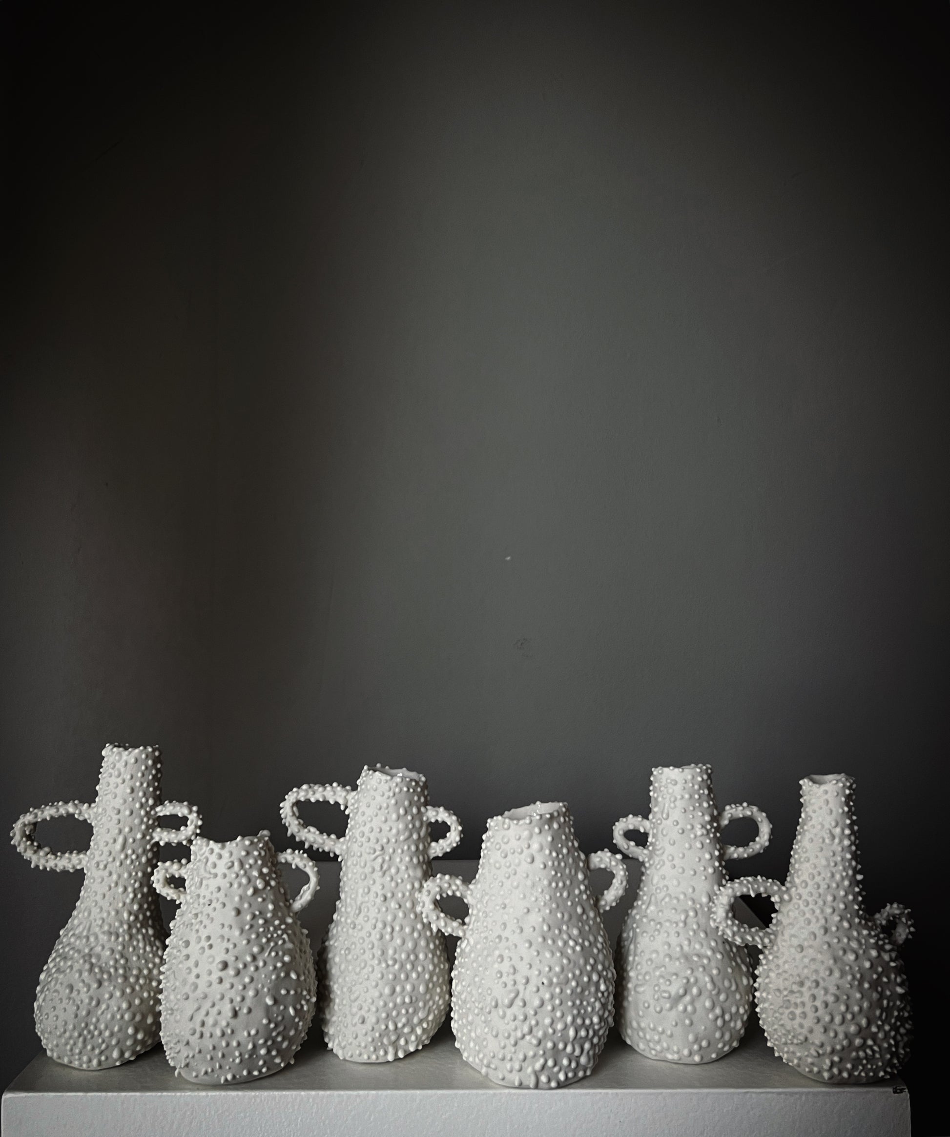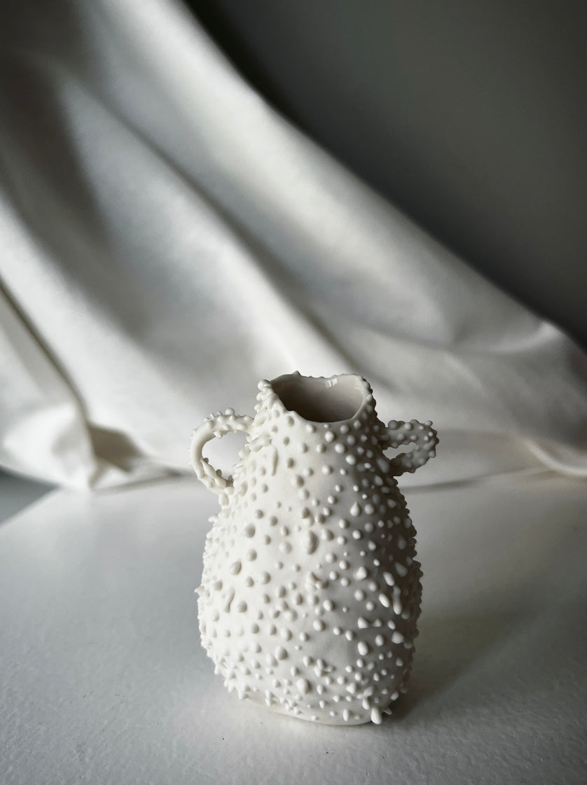Vas i porslin, Knottrig, glaserad blank insida, ca 10 cm