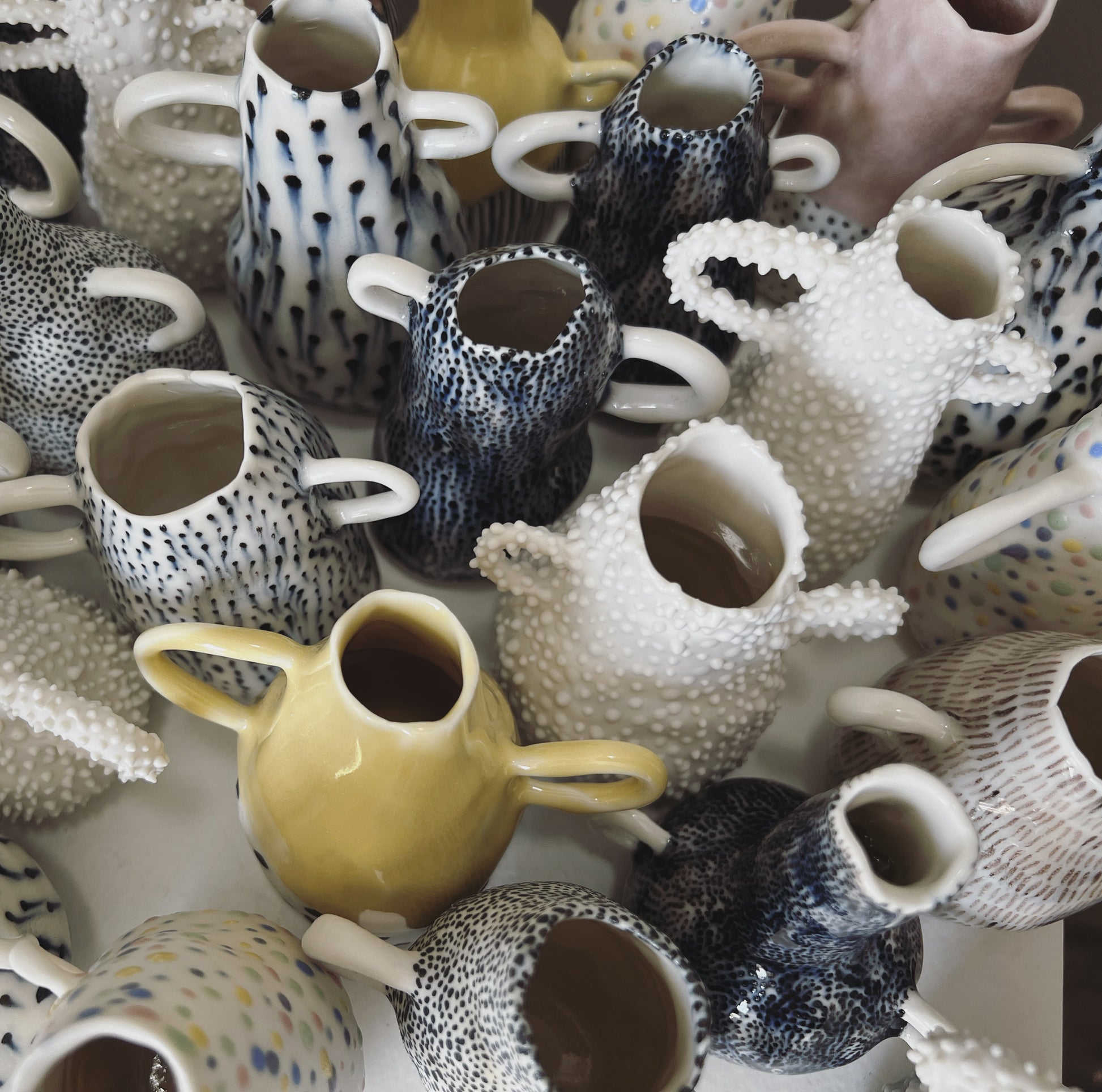 Vas i porslin, Rosa matt glasyr, blank insida, ca 10 cm
