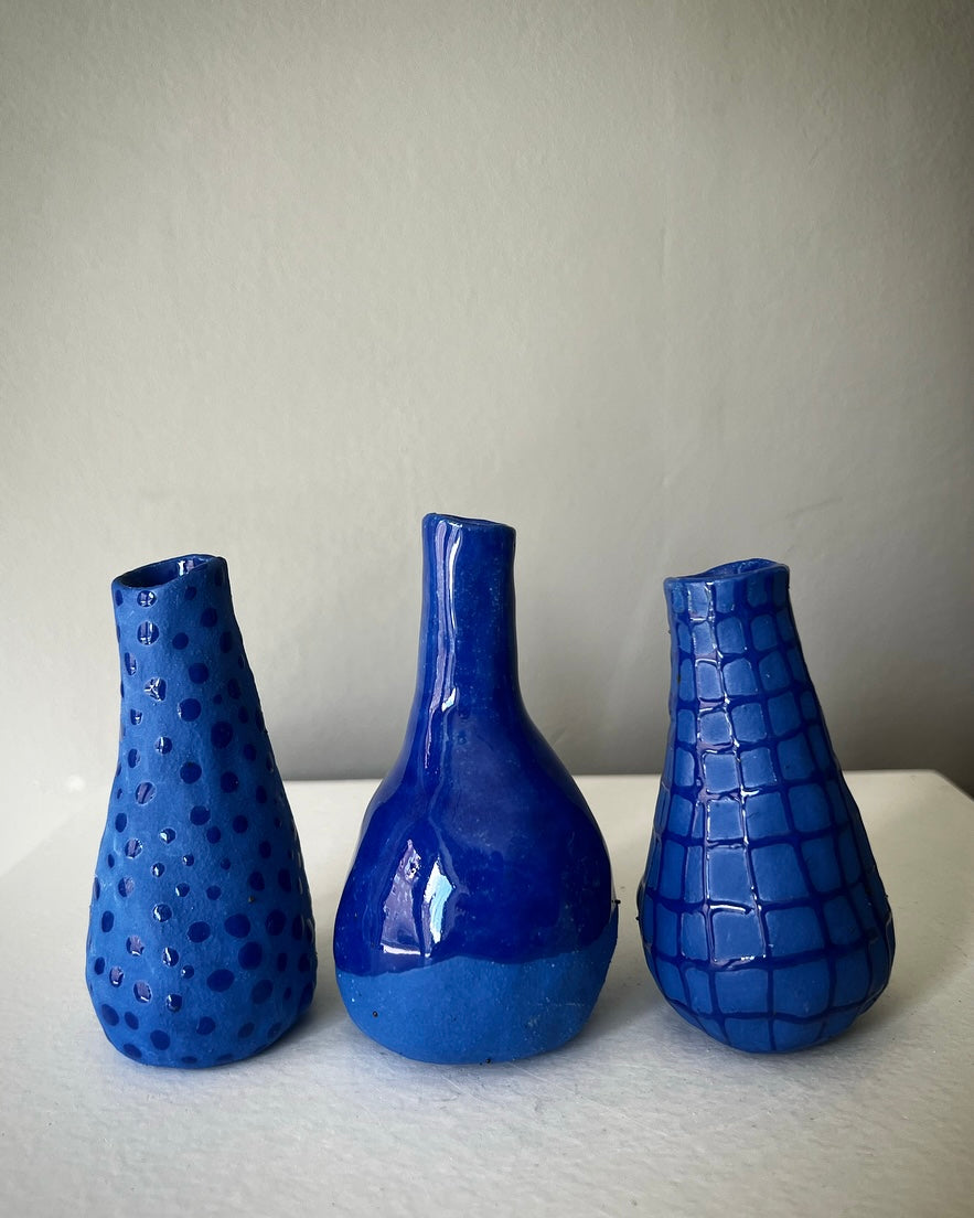 Vaser ca 10cm höga, stengods, glaserad insida, håller vatten.