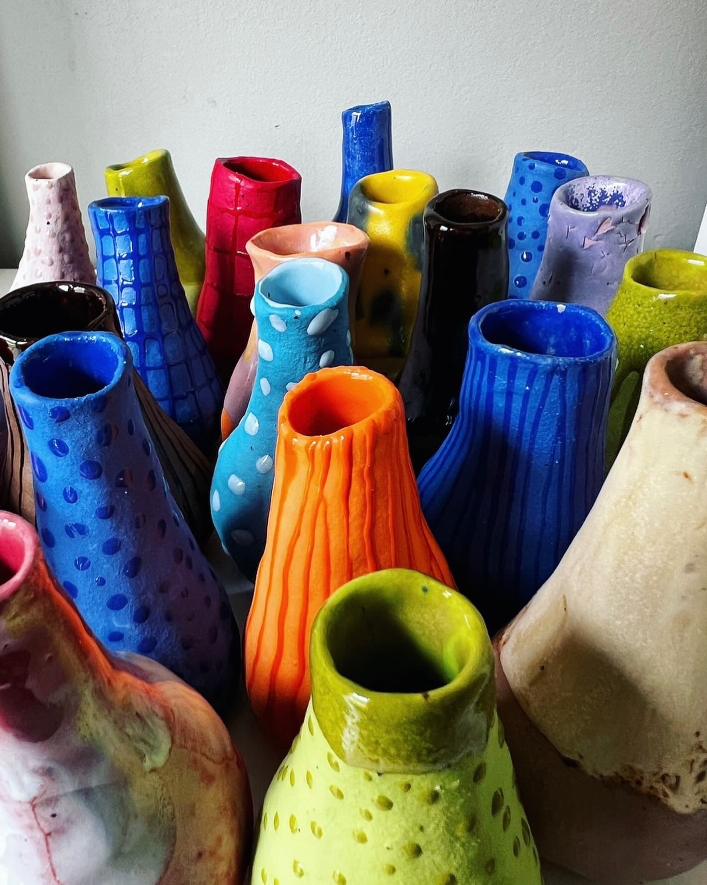 Vaser ca 10cm höga, stengods, glaserad insida, håller vatten.