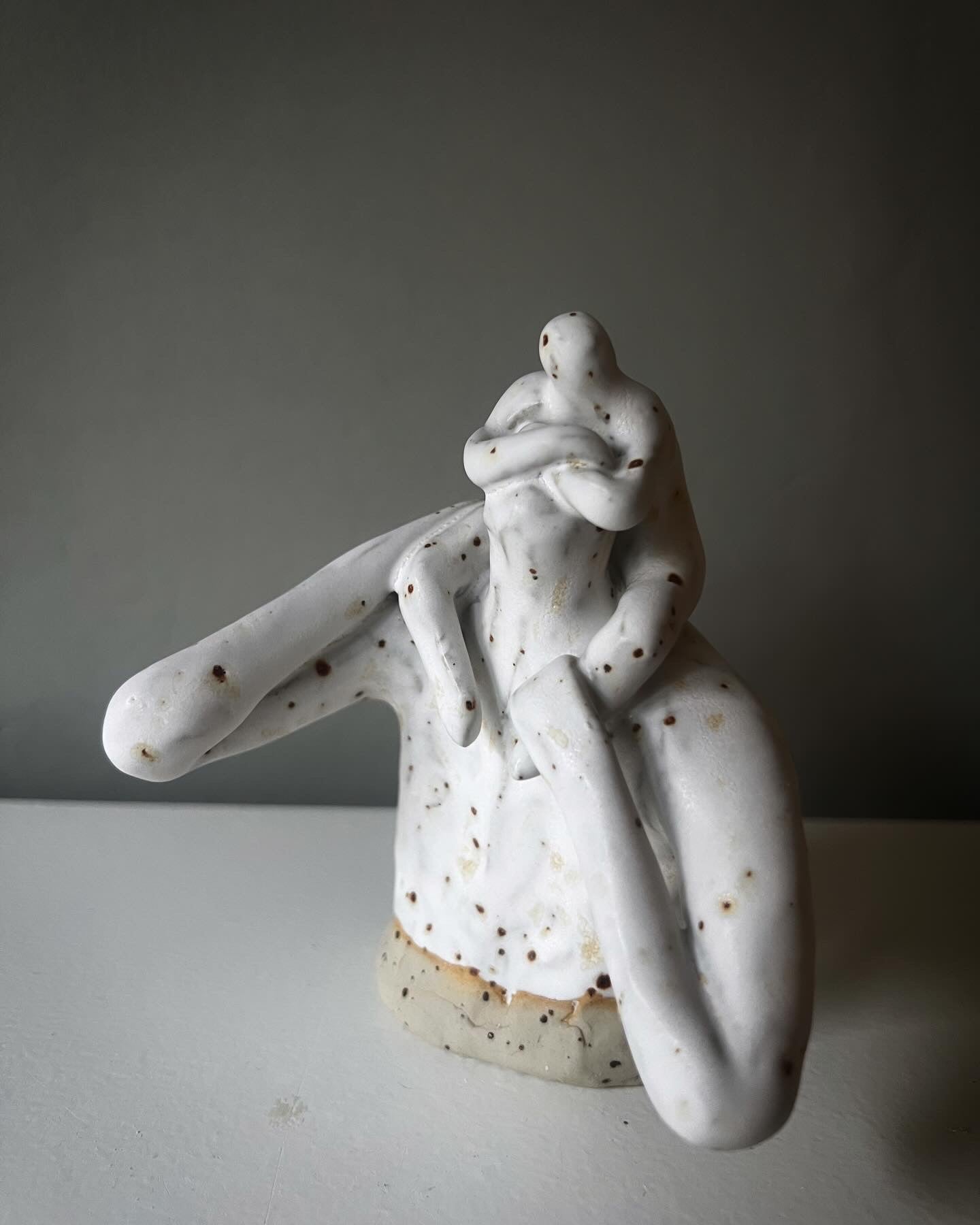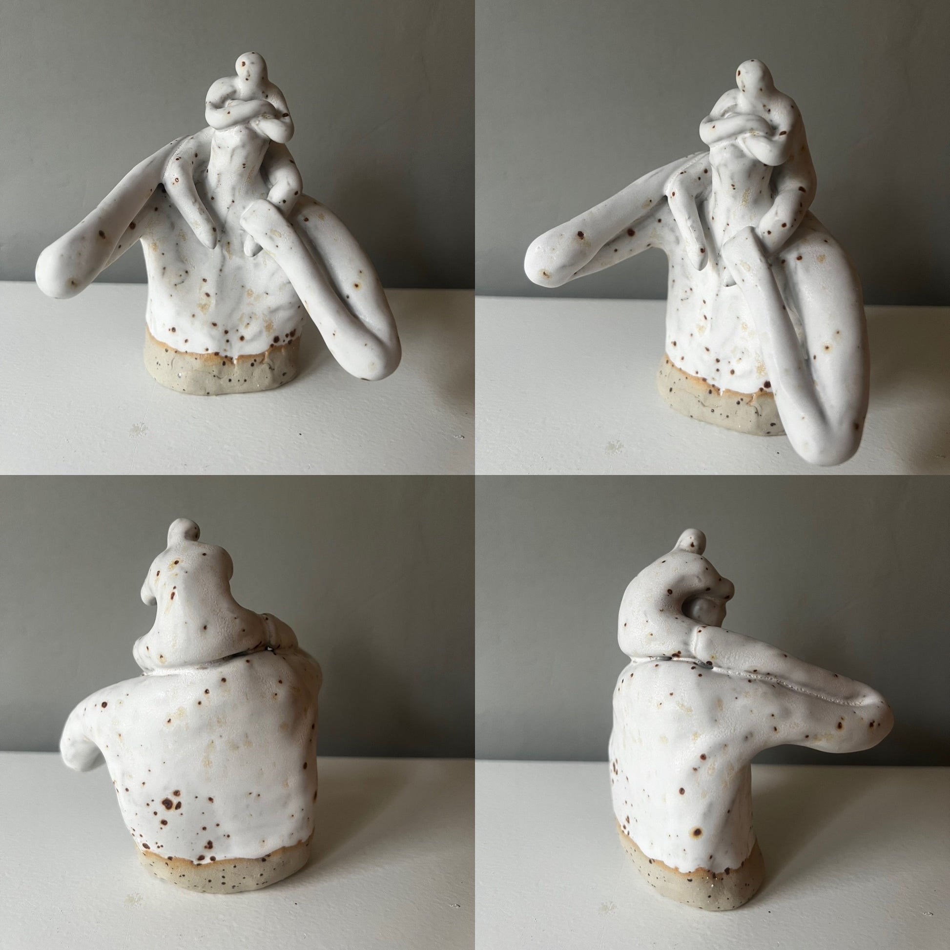 Papporna är skulpturer i stengods, med vit matt glasyr, numrerade. Ca 10-13 cm höga.
