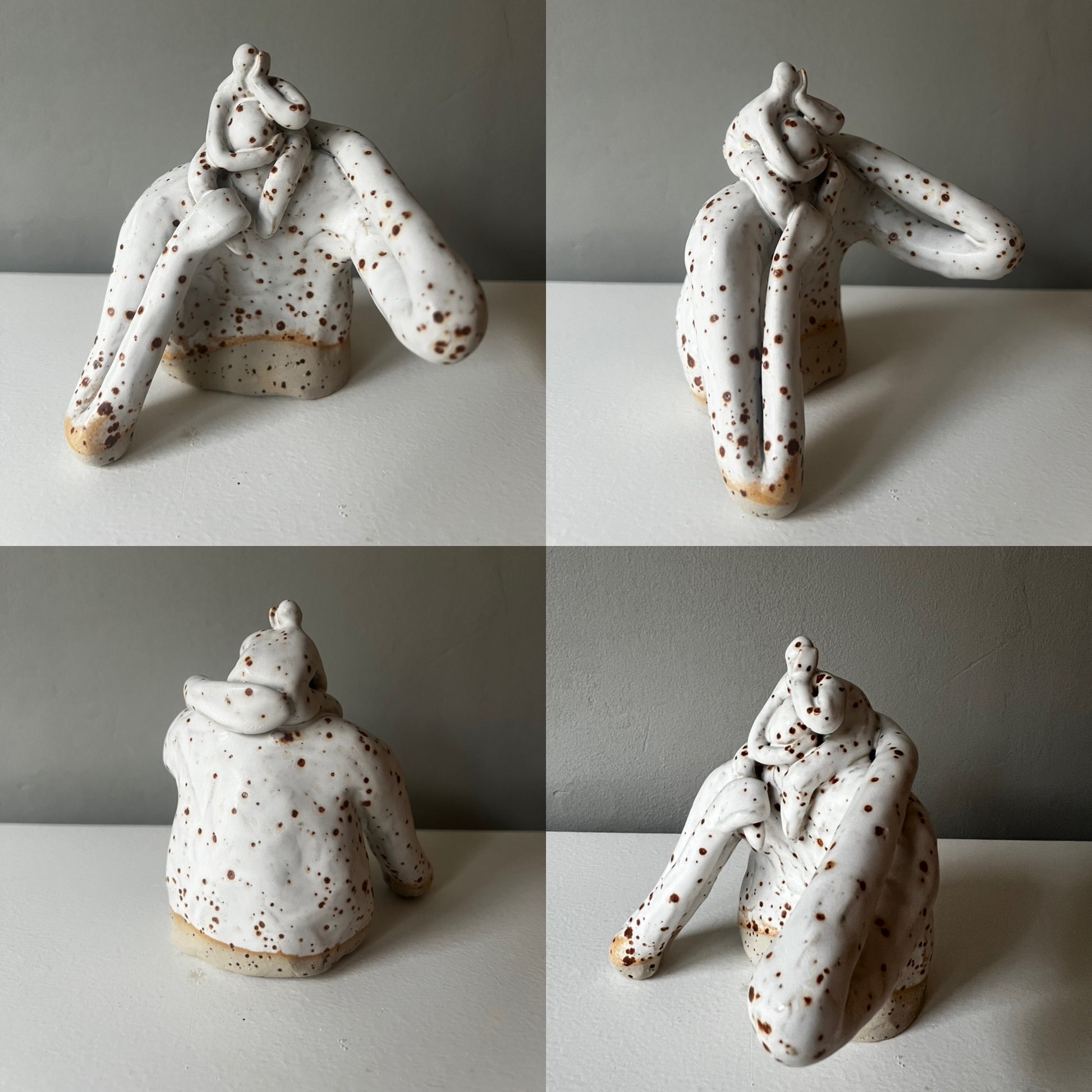 Papporna är skulpturer i stengods, med vit matt glasyr, numrerade. Ca 10-13 cm höga