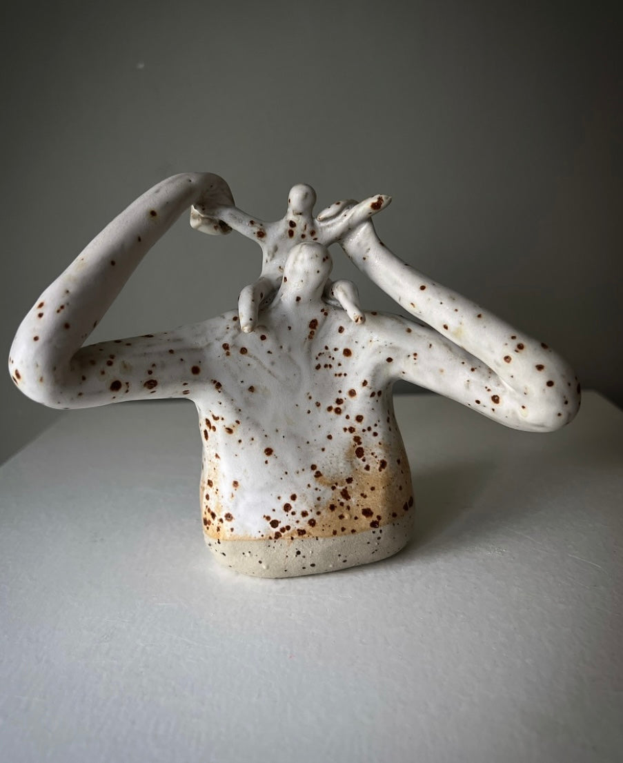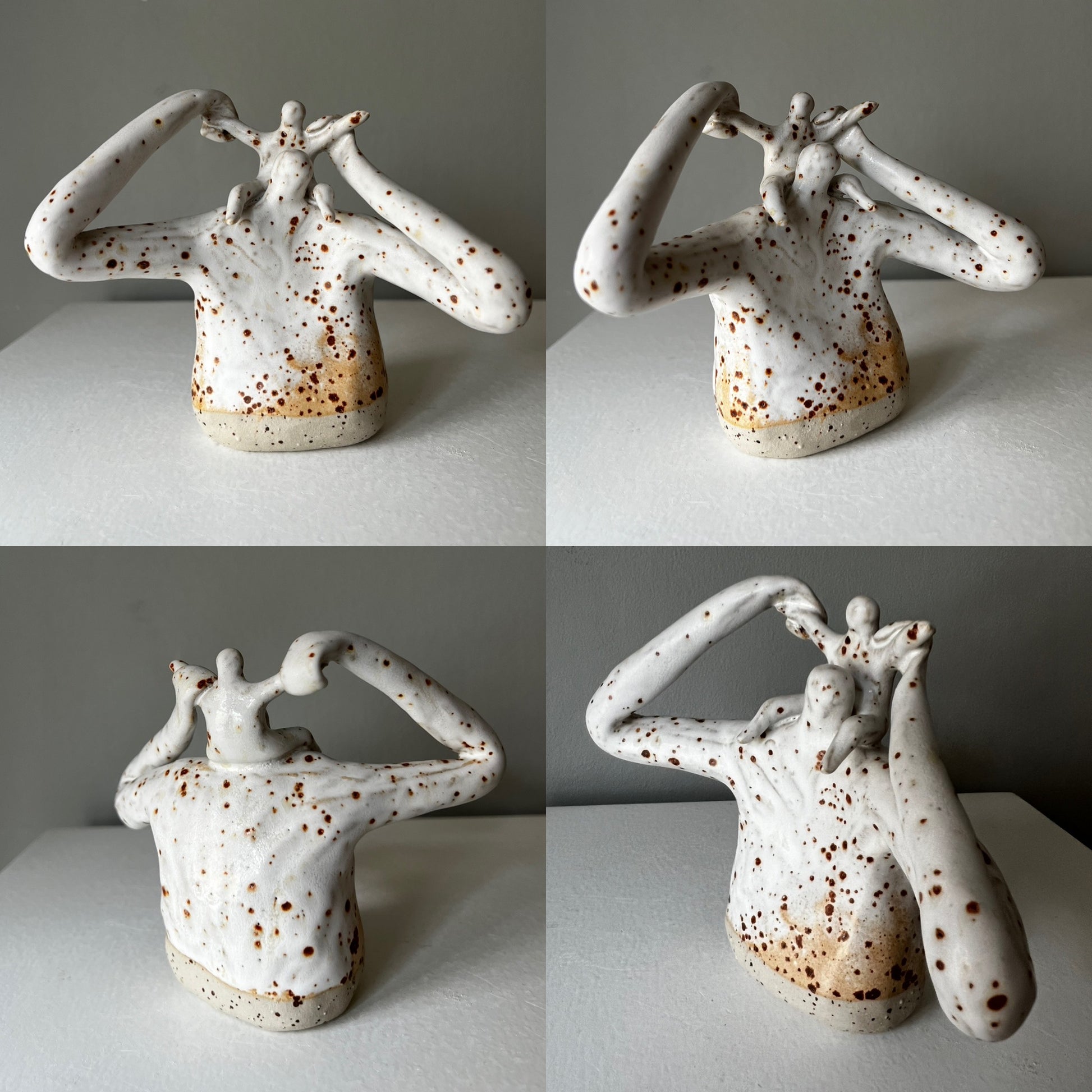 Papporna är skulpturer i stengods, med vit matt glasyr, numrerade. Ca 13 cm höga.