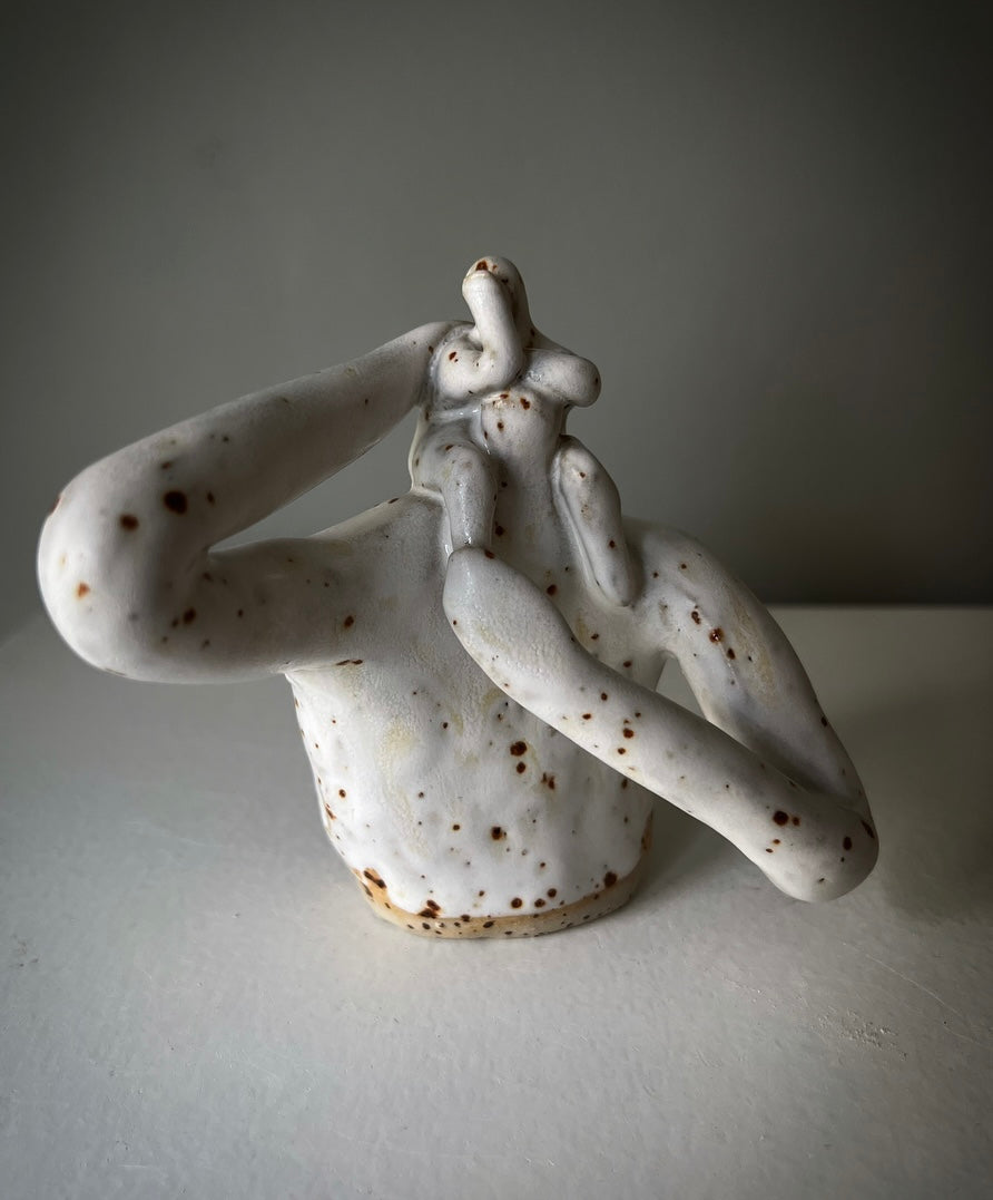 Papporna är skulpturer i stengods, med vit matt glasyr, numrerade. Ca 13 cm höga