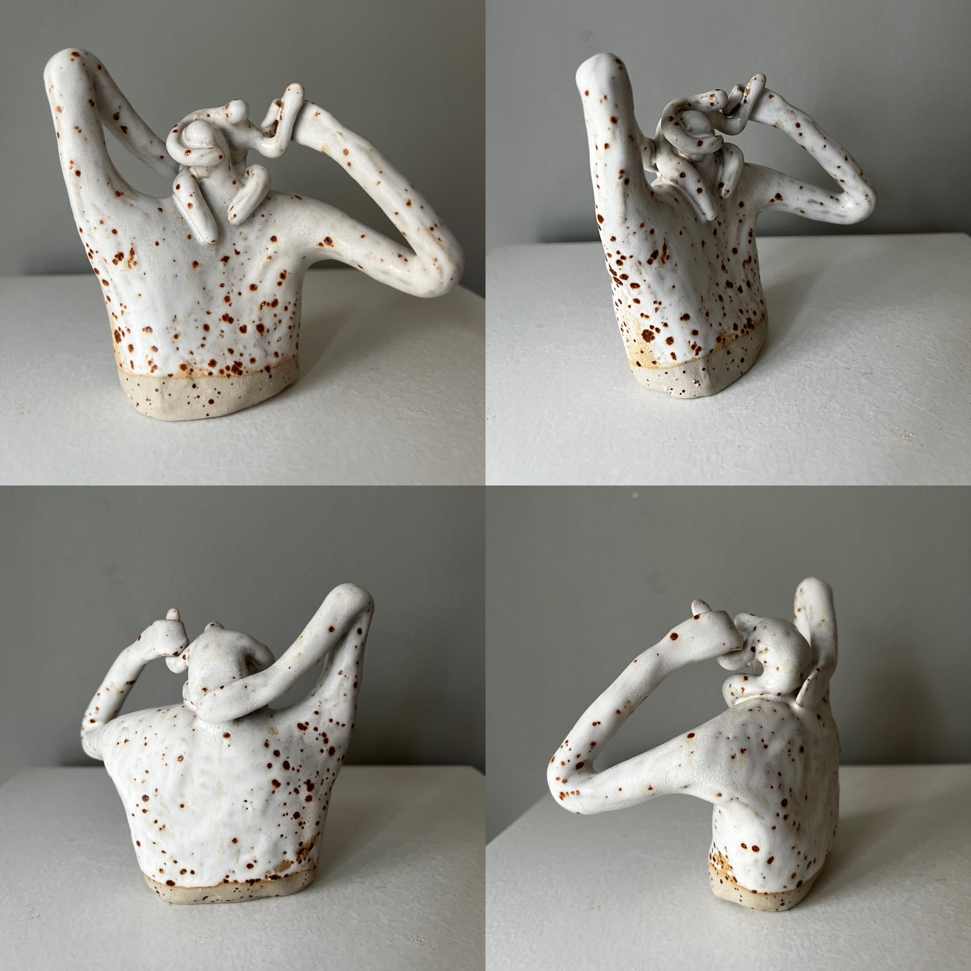 Papporna är skulpturer i stengods, med vit matt glasyr, numrerade. Ca 13 cm höga