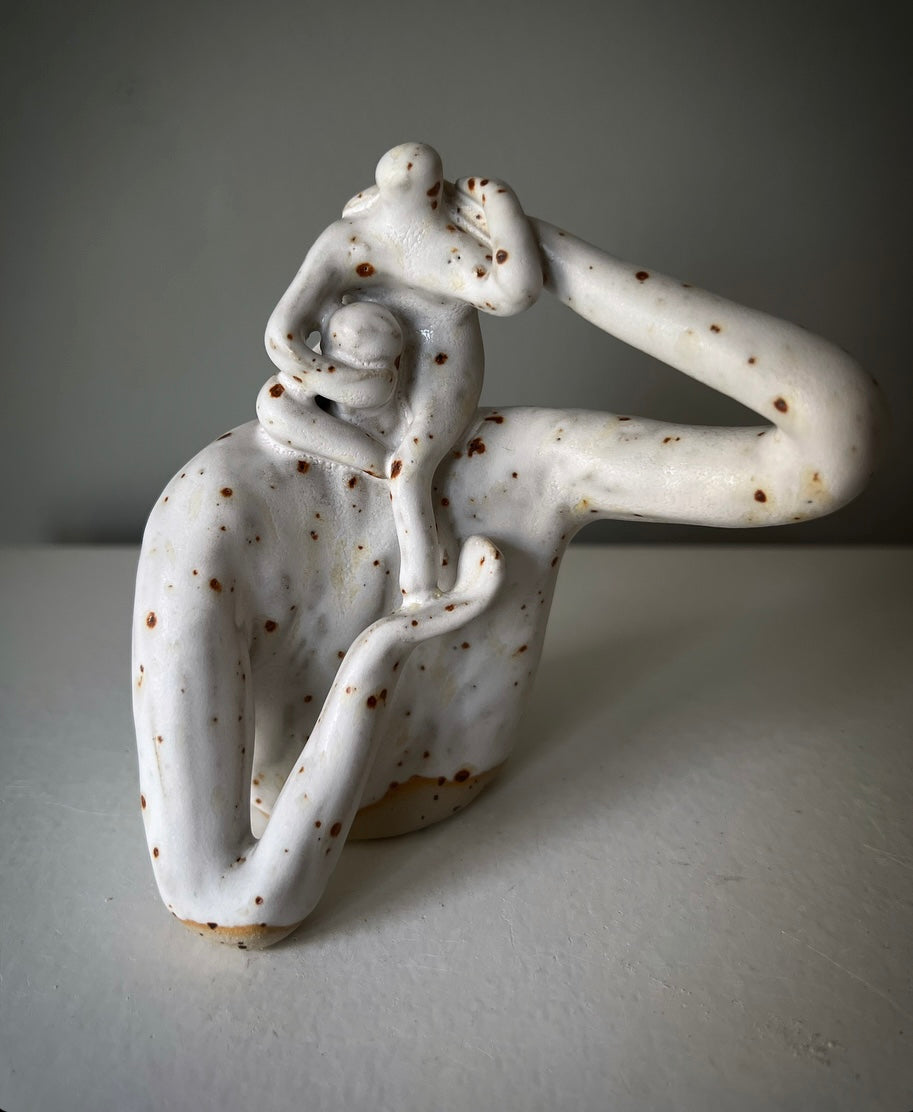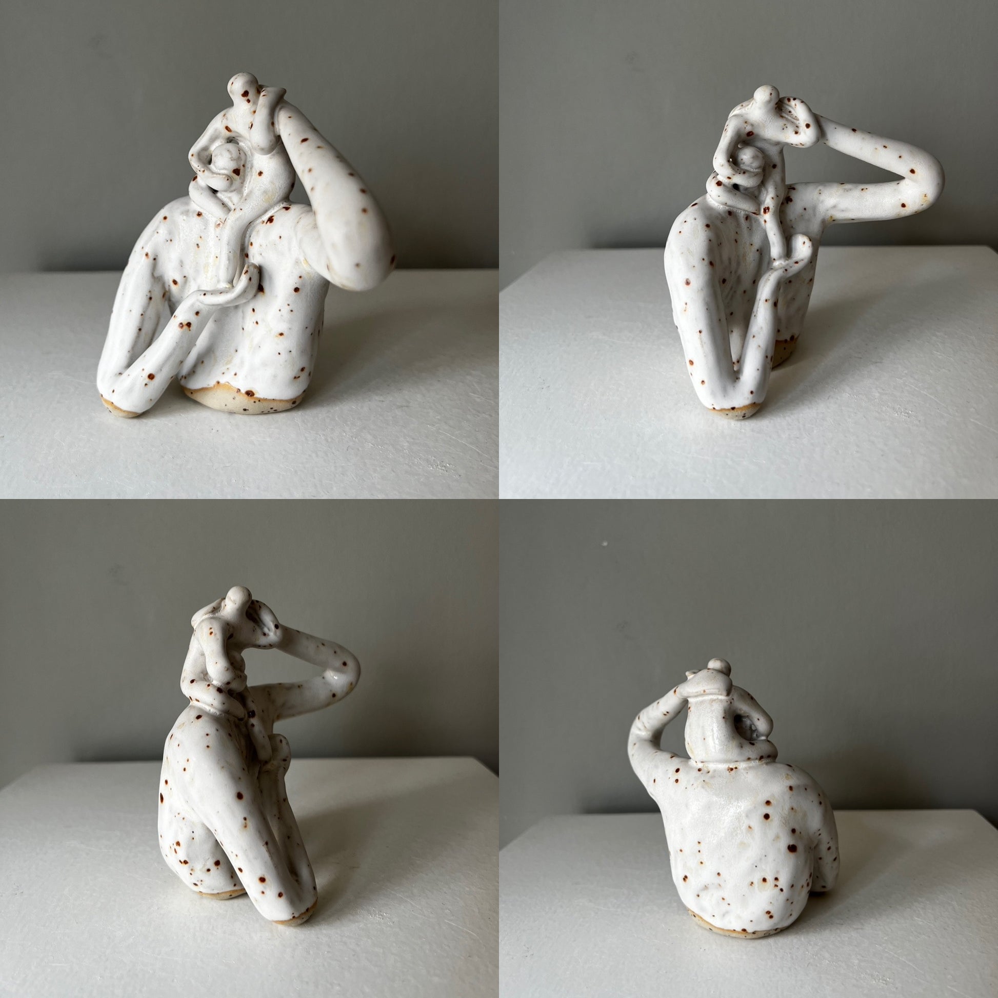 Papporna är skulpturer i stengods, med vit matt glasyr, numrerade. Ca 13 cm höga