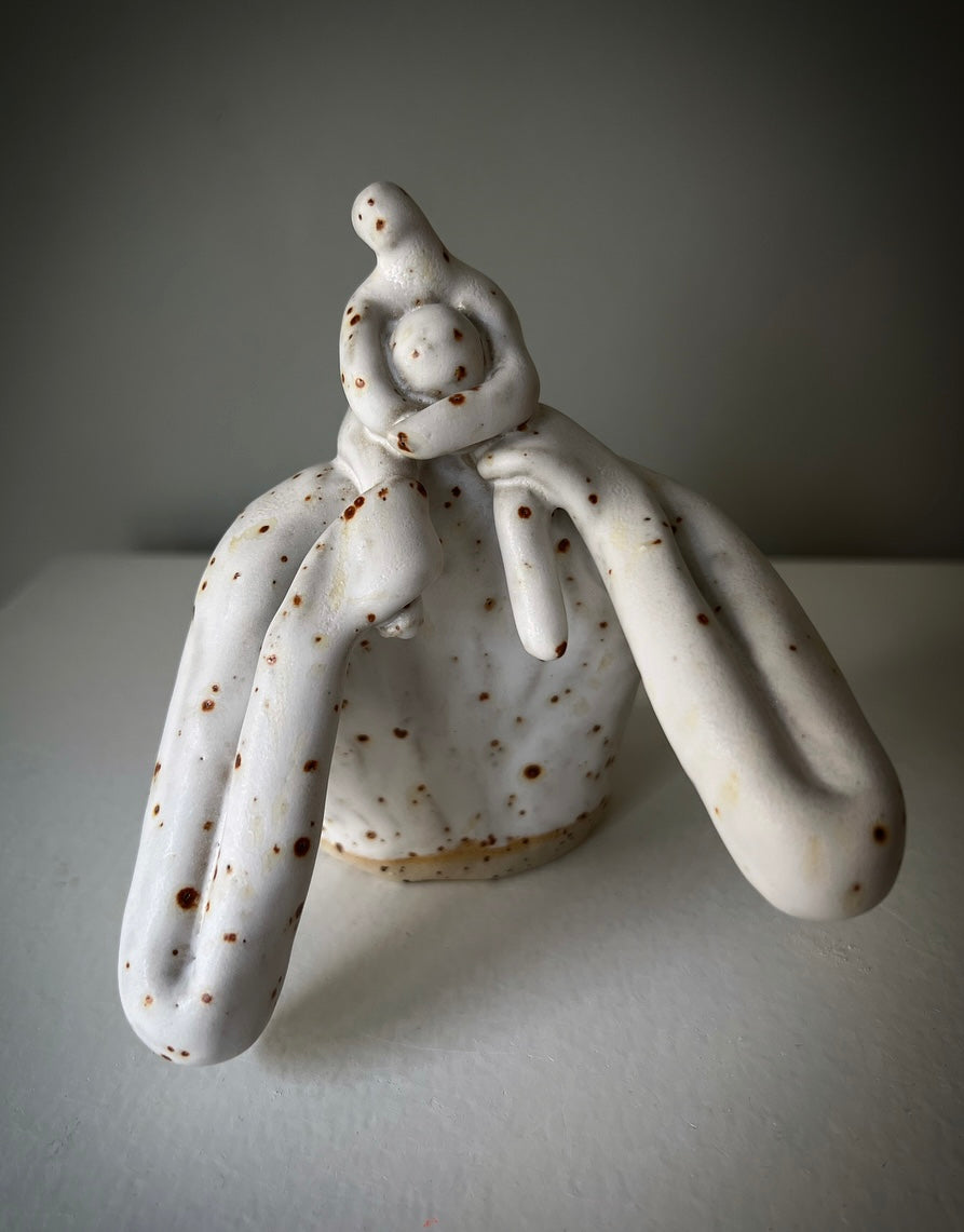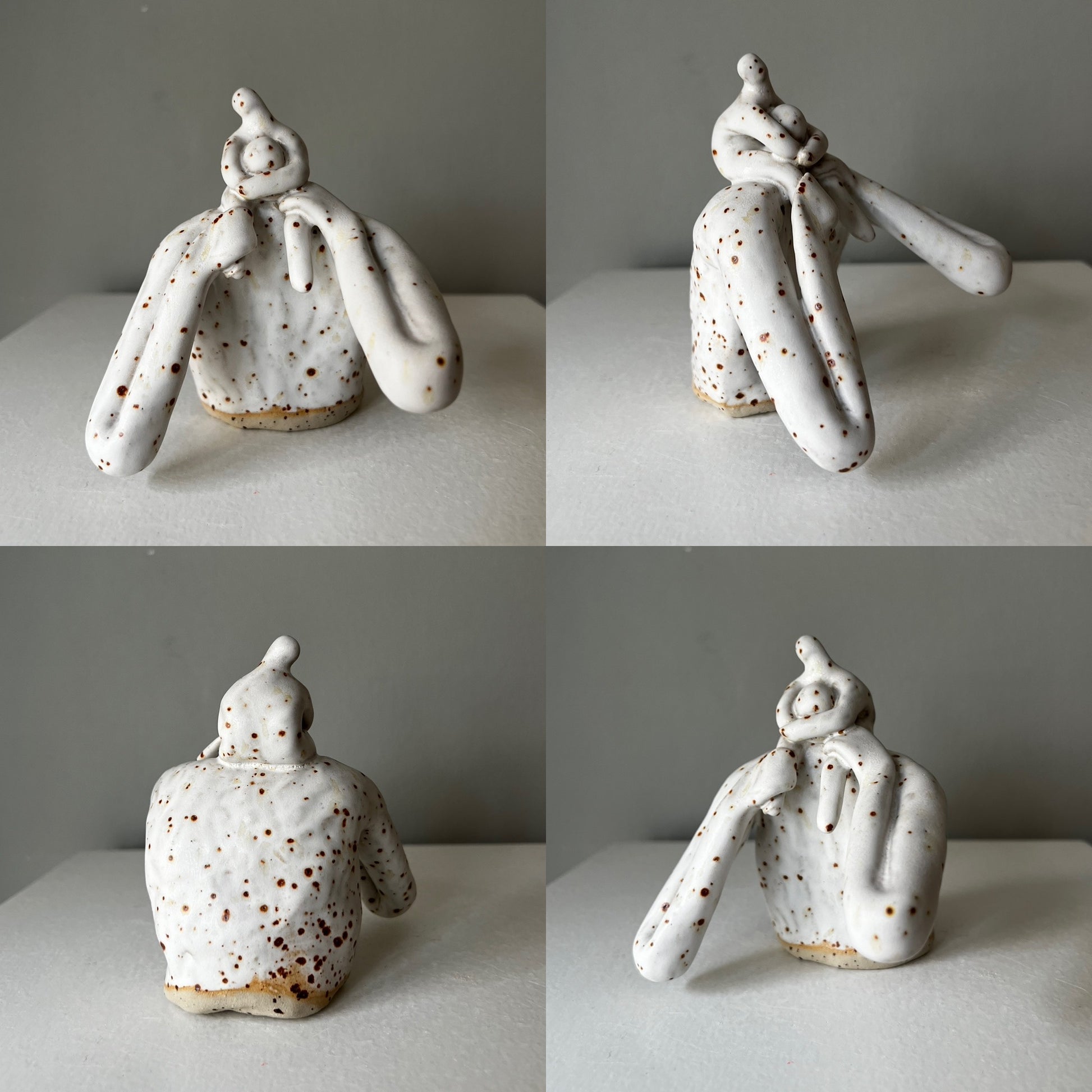 Papporna är skulpturer i stengods, med vit matt glasyr, numrerade. Ca 13 cm höga