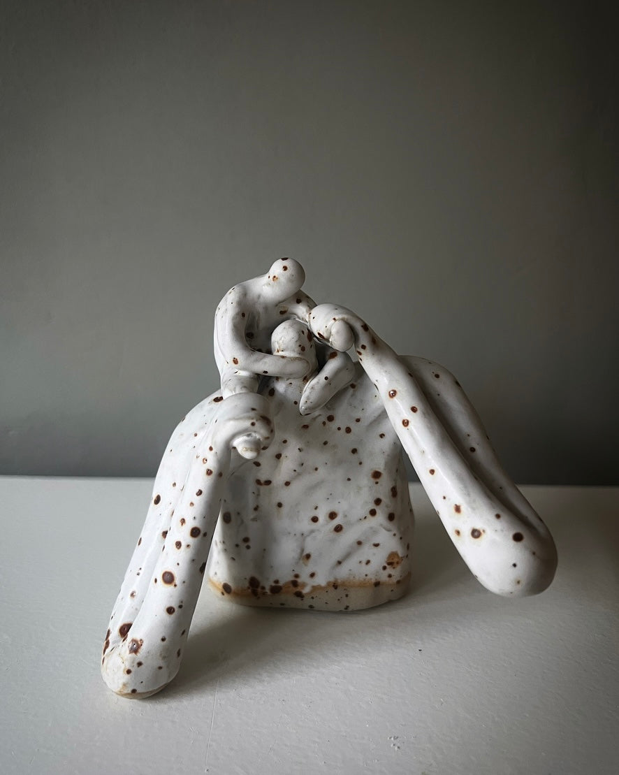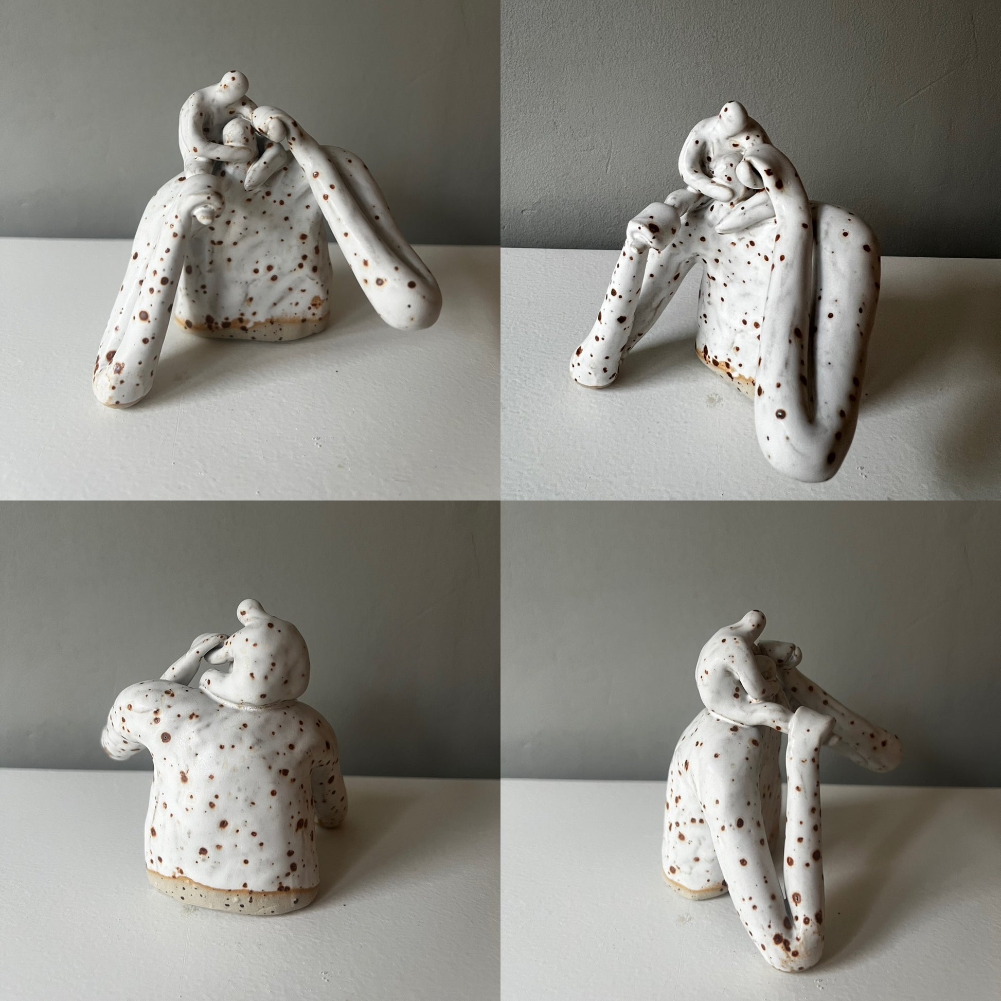 Papporna är skulpturer i stengods, med vit matt glasyr, numrerade. Ca 10-13 cm höga